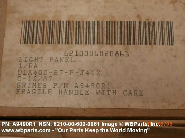 NSN 6210-00-602-0861 A9490R1, 6184061, 618406-1