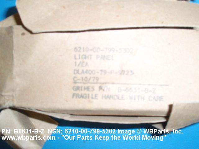 Part Alternates: B6631BZ, 6210-00-799-5302, 00-799-5302, 6210007995302, 007995302