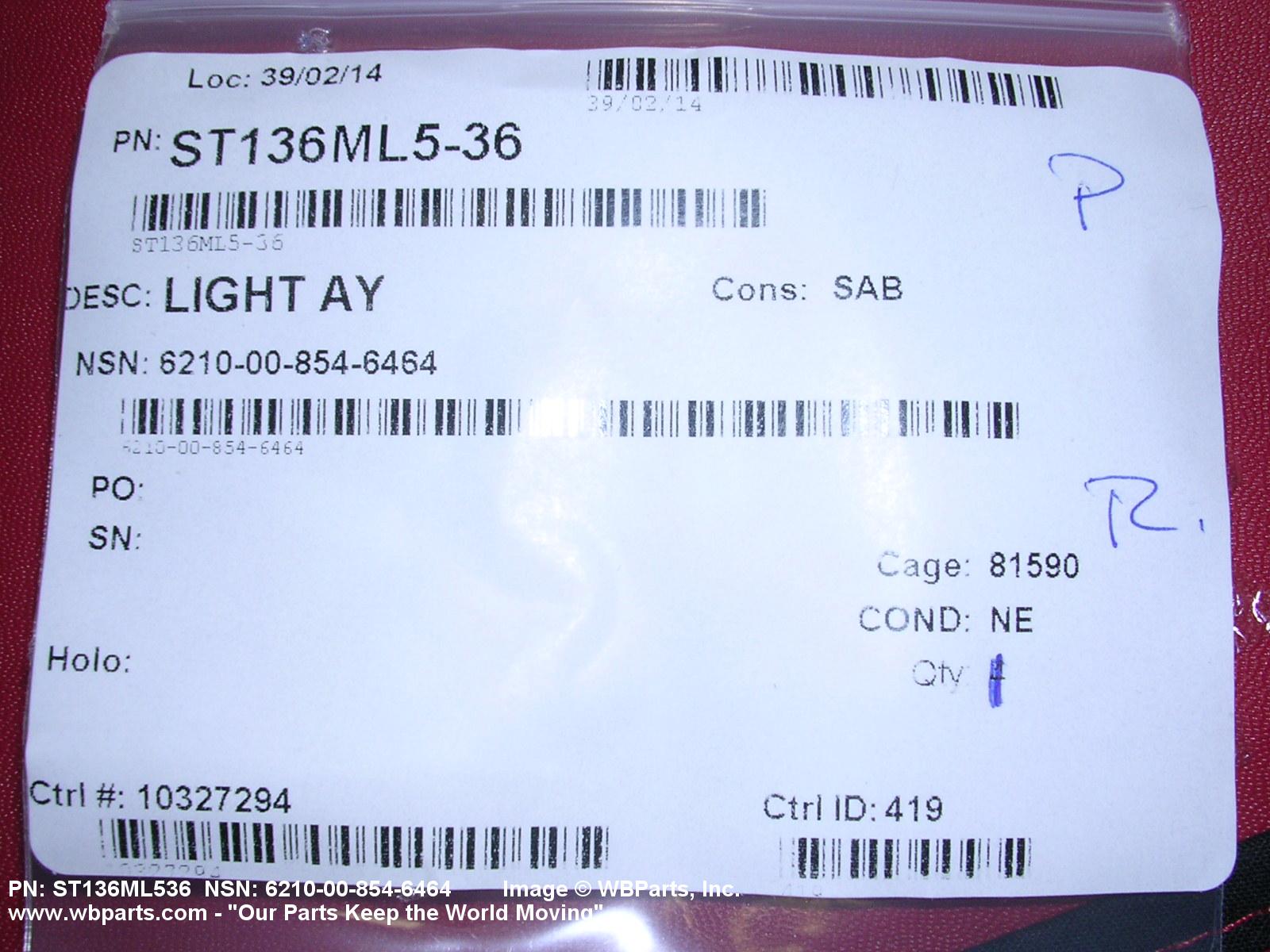 Part Alternates: ST136ML536, ST136ML5-36, FNRTDSYCP22264015, 69571236, 695712-36, 6210-00-854-6464, 00-854-6464, 6210008546464, 008546464