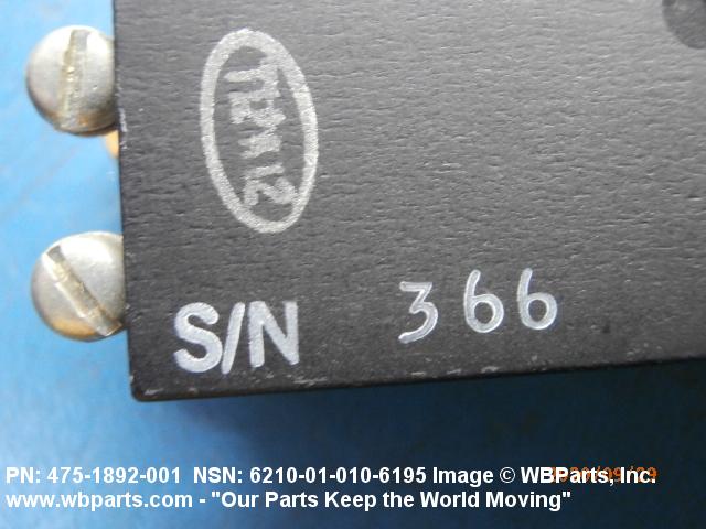 Part Alternates: 4751892001, 475-1892-001, 6210-01-010-6195, 01-010-6195, 6210010106195, 010106195