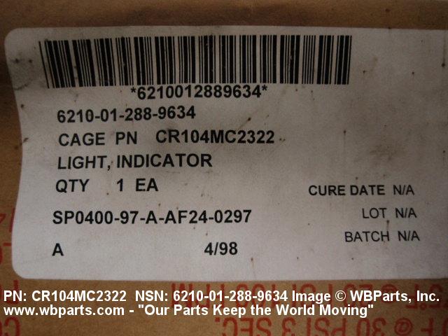 Part Alternates: CR104MC2322, 6210-01-288-9634, 01-288-9634, 6210012889634, 012889634