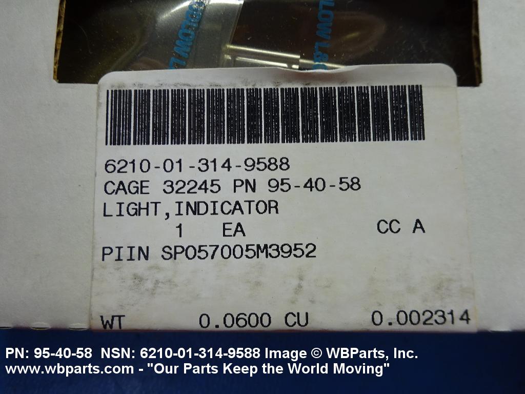 Part Alternates: 954058, 95-40-58, 6210-01-314-9588, 01-314-9588, 6210013149588, 013149588