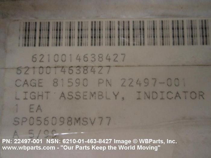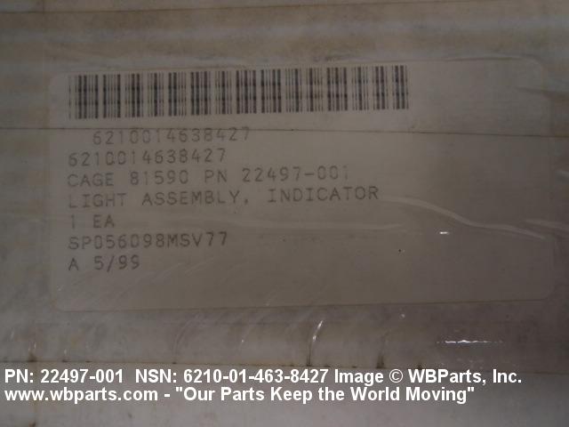 Part Alternates: 22497001, 22497-001, 6210-01-463-8427, 01-463-8427, 6210014638427, 014638427