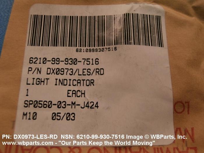Part Alternates: D973/LES, D973/LES/RD, D973LES, D973LESRD, DX0973/LES/RD, DX0973LESRD, 6210-99-930-7516, 99-930-7516, 6210999307516, 999307516