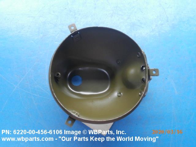 6220-00-456-6106 A housing designed to surround or enclose a LIGHT (1). It may provide mounting facilities for components and may be single or multiple piece construction. Designed to accommodate a lens and/or lamp which are not included. Excludes SHADE, LAMP.20362100045Indoor and Outdoor Electric Lighting Fixtures62200038Electric Vehicular Lights and Fixtures62300045Electric Portable and Hand Lighting Equipment