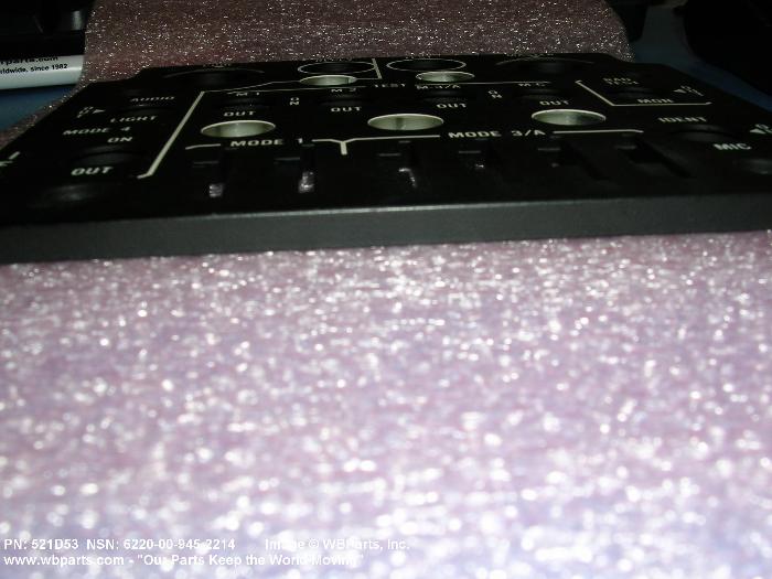6220-00-945-2214 An item composed of a coated transparent or partly transparent/partly opaque materiels, engraved with letters, words and/or symbols, designed to allow light to be transmitted through the engraving(s) for indicating purposes. It may have an electrical lighting circuit either on a removable printed circuit board or embedded within the panel. The circuit may have removable or nonremovable electroluminescent and/or incandescent lamps for lighting. Dials and/or switches may be included. Excludes DISPLAY, OPTELECTRONIC. See also INDICATOR (as modified), and LIGHT (1), INDICATOR20262100045Indoor and Outdoor Electric Lighting Fixtures62200038Electric Vehicular Lights and Fixtures