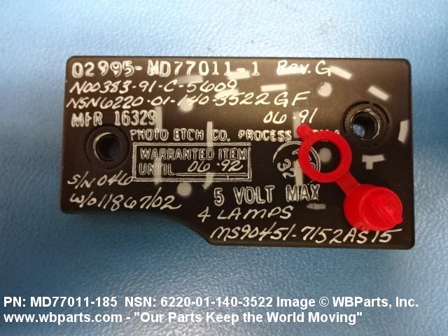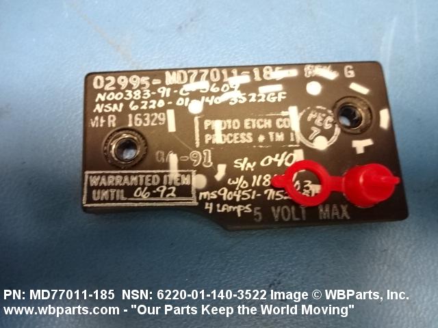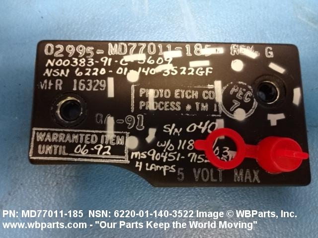 NSN 6220-01-140-3522 MD77011185, MD77011-185, 74B800070185