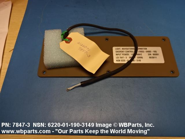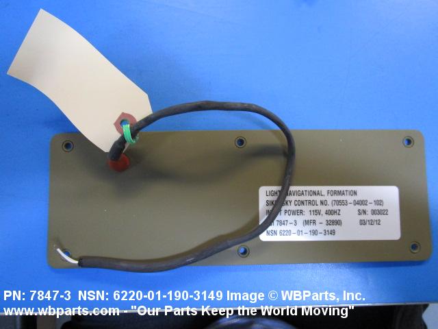 Part Alternates: 3013301, 30-1330-1, 3013303, 30-1330-3, 70553-04002-102, 78473, 7847-3, 6220-01-190-3149, 01-190-3149, 7055304002102, 6220011903149, 011903149