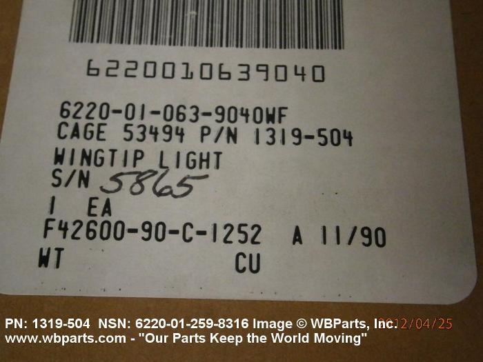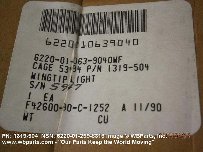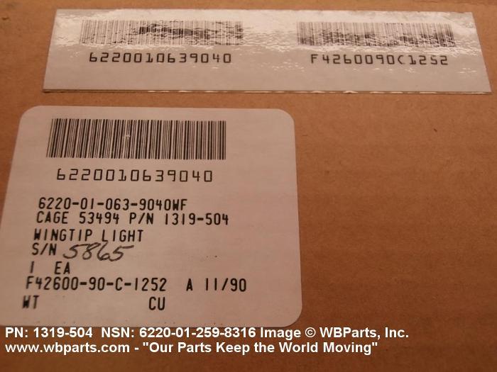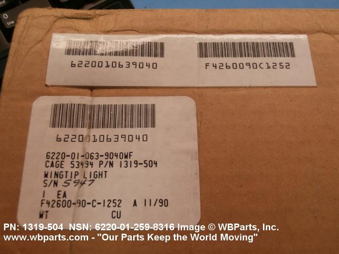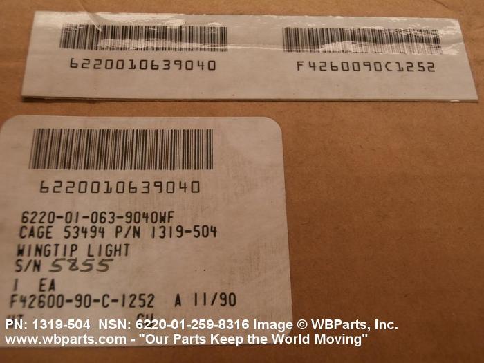 NSN 6220-01-259-8316 1319504, 1319-504, 01-259-8316