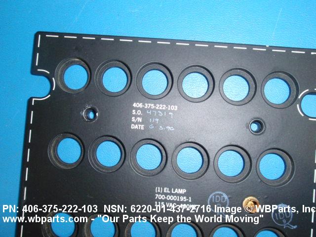 Part Alternates: 406375222103, 406-375-222-103, 8700001171, 870-000117-1, 6220-01-437-2716, 01-437-2716, 6220014372716, 014372716