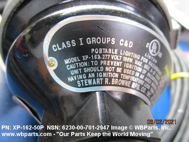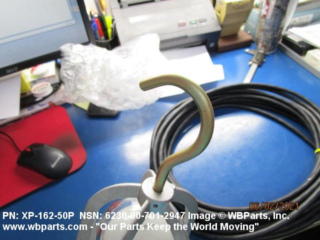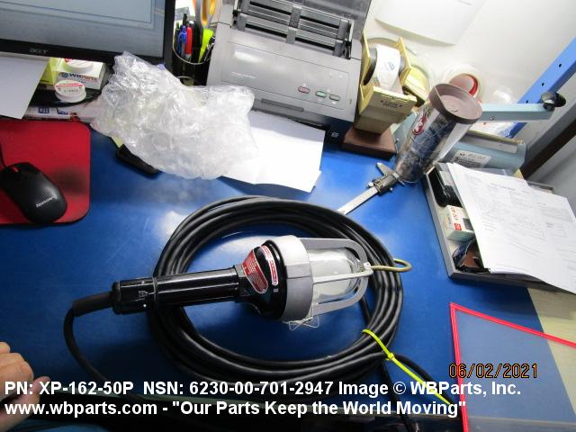 6230-00-701-2947 A light specifically designed for portable use by means of a length of flexible cable, which may or may not be provided. Includes one or more of the following: lamp, handle, guard, hook, reflector, switch, connector, light filter, lens or globe. It may also include a cable reel. Excludes self-powered lights, and items such as desk lights and floor lights which are designed to be mounted or placed on or near a specified surface. See also FLOODLIGHT, ELECTRIC; LIGHT, COCKPIT, AIRCRAFT; SEARCHLIGHT; and SPOTLIGHT.