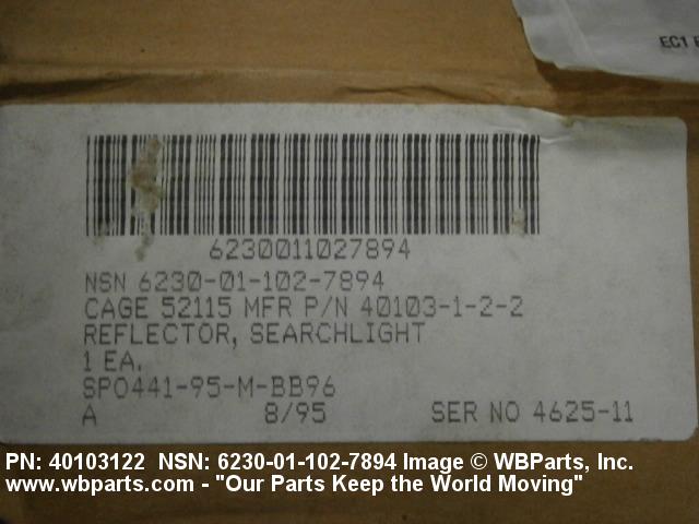 | 62 | 26 OCT 1980 | 01-102-7894 | 12790 ( REFLECTOR, LIGHT ) |