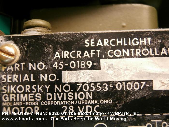 Part Alternates: 4501897, 45-0189-7, 70553-01007-103, 6230-01-105-6580, 01-105-6580, 6230011056580, 7055301007103, 011056580