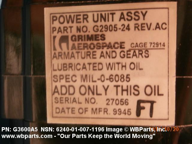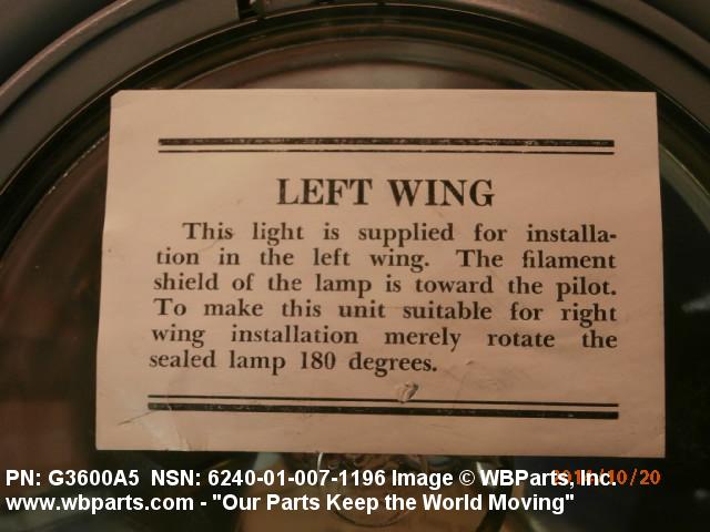 NSN 6240-01-007-1196 F300 0T 016 5995, F3000T0165995, G3600A5