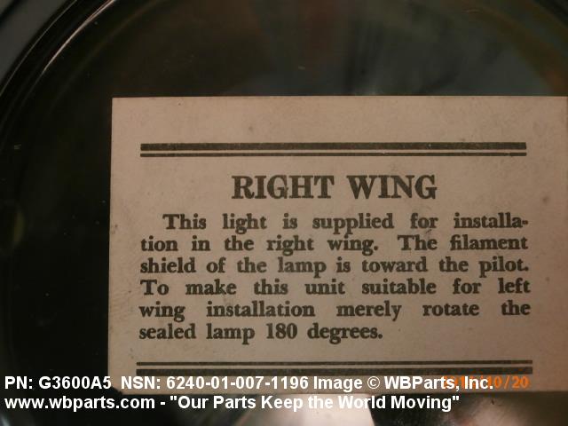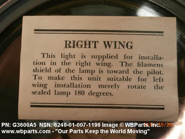 Part Alternates: F300 0T 016 5995, F3000T0165995, G3600A5, 9728769105, 6240-01-007-1196, 01-007-1196, 6240010071196, 010071196