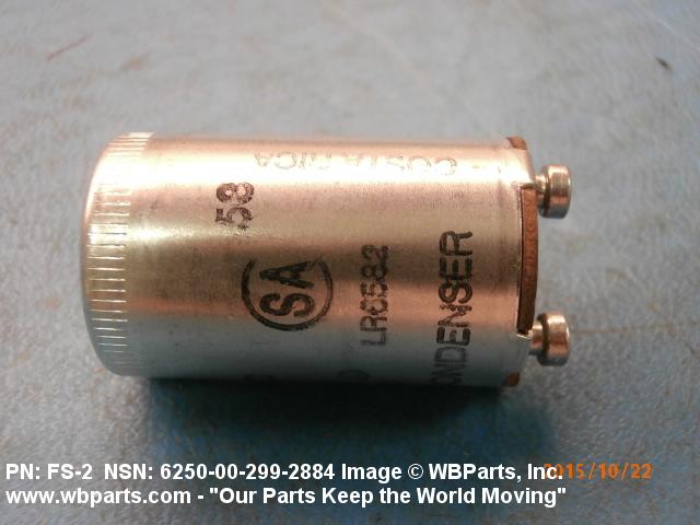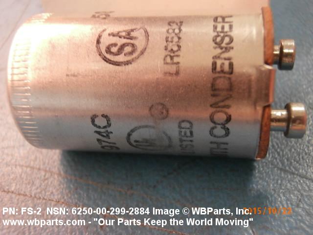 6250-00-299-2884 An item consisting of a switch assembled in a case with terminals or contacts, specially designed to initially actuate the mercury arc in a fluorescent lamp. It may include a capacitor.