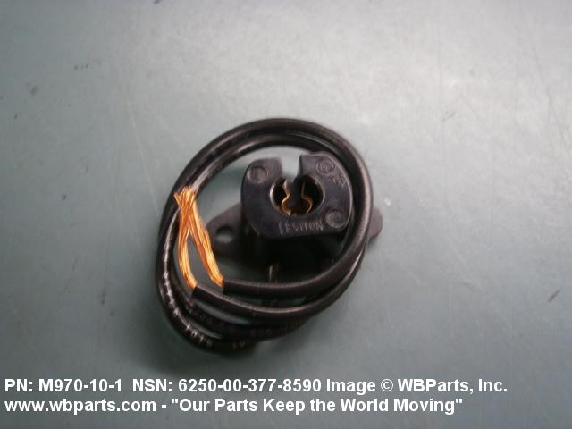 6250-00-377-8590 An electric fitting primarily designed to electrically and mechanically accommodate a lamp. It may include an integral switch, transformer, or dropping resistor, provided these items control the lamp only. It does not include a shade, lens, reflector, or other item for modifying illumination. For items designed to mount on a CONDUIT OUTLET, or JUNCTION BOX; see FIXTURE, LIGHTING.