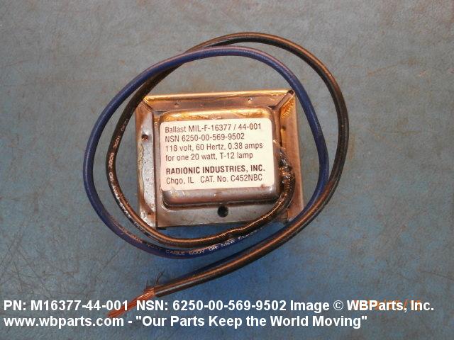 6250-00-569-9502 An item specifically designed for use with fluorescent or mercury vapor lamps and starters to provide a high starting voltage for striking the arc and to stabilize the operating impedance of the circuit in order to maintain the operating current at a steady value.