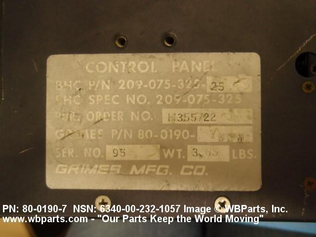 Part Alternates: 20907532525, 209-075-325-25, 8001907, 80-0190-7, 6340-00-232-1057, 00-232-1057, 6340002321057, 002321057
