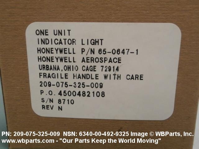 Part Alternates: 209075325009, 209-075-325-009, 2090753259, 209-075-325-9, 6506471, 65-0647-1, 6340-00-492-9325, 00-492-9325, 6340004929325, 004929325