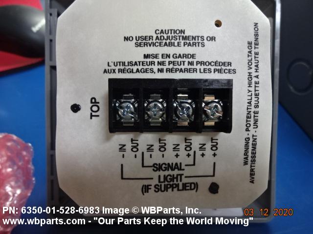 6350-01-528-6983 An electrical item which may be part of or coupled to equipment to give automatic audible and visual warning of failure of the equipment or of receipt of a signal. Excludes ALARM-MONITOR.