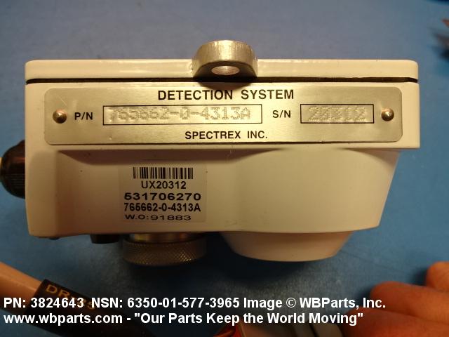 6350-01-577-3965 A device designed to detect the presence of predetermined amounts of smoke, dust, and the like, within the measuring area. The presence of any of these substances causes a change in the output signal of the device, which relays a warning message back to a central panel. The device itself does not provide any audible or visible output, or analyze chemical content. Excludes ALARM, SMOKE, AUTOMATIC.20263400033Aircraft Alarm and Signal Systems63500059Miscellaneous Alarm, Signal, and Security Detection Systems