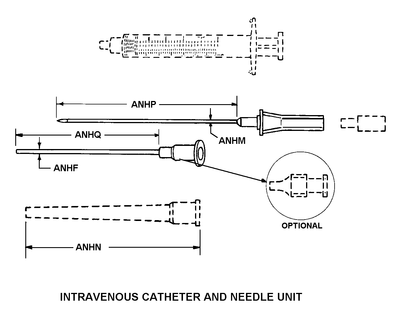 6515-01-054-1130 An item consisting of a cannulated needle with an intravenous catheter, and it may contain additional components, such as a hypodermic syringe, needle guard, flow control plug, and the like. The catheter is inserted into the vein by way of the needle's puncture, and is left in position for continued intravenous administration after the needle is withdrawn. A syringe, when supplied, is used to better control insertion of the catheter needle unit or for blood aspiration.