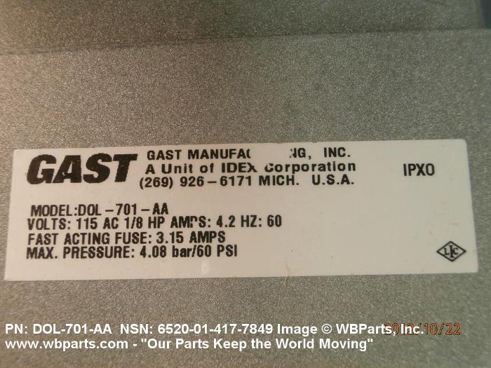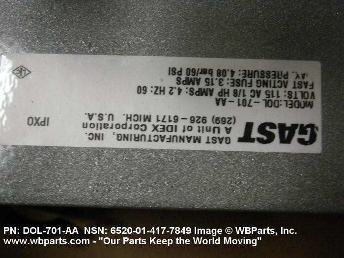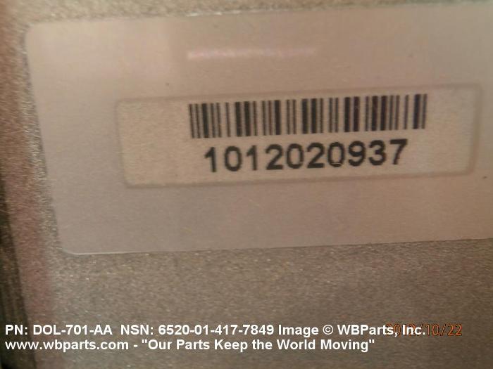 Part Alternates: NAVY 1993 2159, NAVY19932159, DOL701AA, DOL-701-AA, LLH387584 , 6520-01-417-7849, 01-417-7849, 6520014177849, 014177849