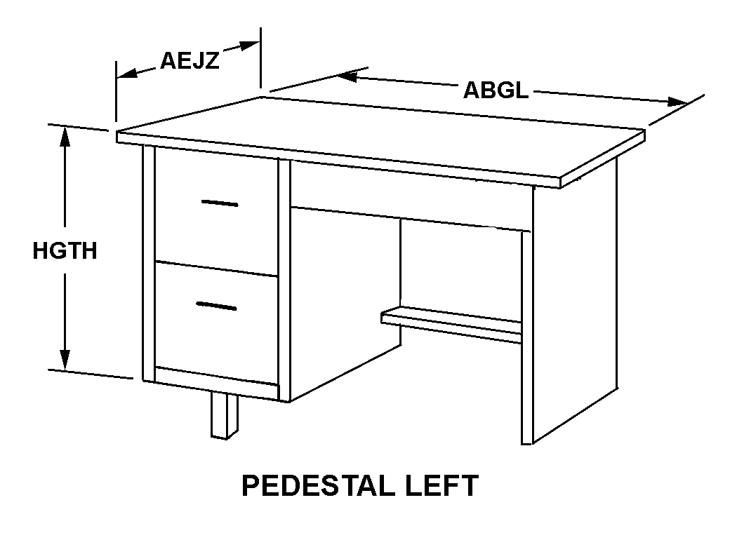6530-01-078-1905 An item of furniture designed to provide a smooth horizontal surface, primarily for use in writing. It has open knee space beneath the writing surface. It may have a top drawer located above the knee space and may have drawers and/or compartments on one or both sides, arranged in vertical tiers, flanking the open space.20520900039Miscellaneous Ship and Marine Equipment65300053Hospital Furniture, Equipment, Utensils, and Supplies71050019Household Furniture71100016Office Furniture71950036Miscellaneous Furniture and Fixtures