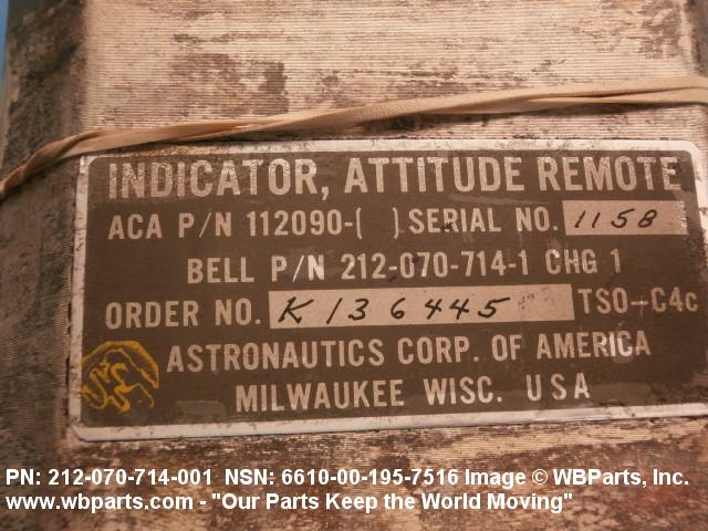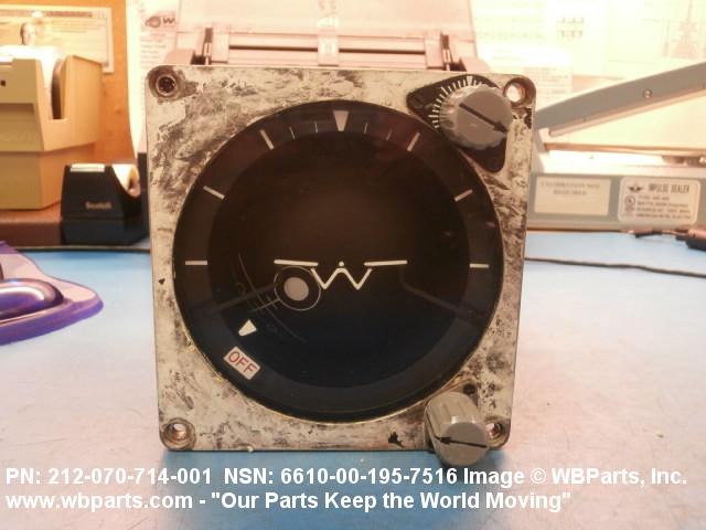 6610-00-195-7516 An indicator which presents information showing the roll and pitch angles of an aircraft in relation to the earth.