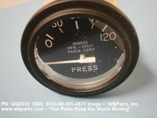 6620-00-005-4879 An indicator which indicates the pressure of a gas or liquid in a given system.20266200018Engine Instruments66850073Pressure, Temperature, and Humidity Measuring and Controlling Instruments