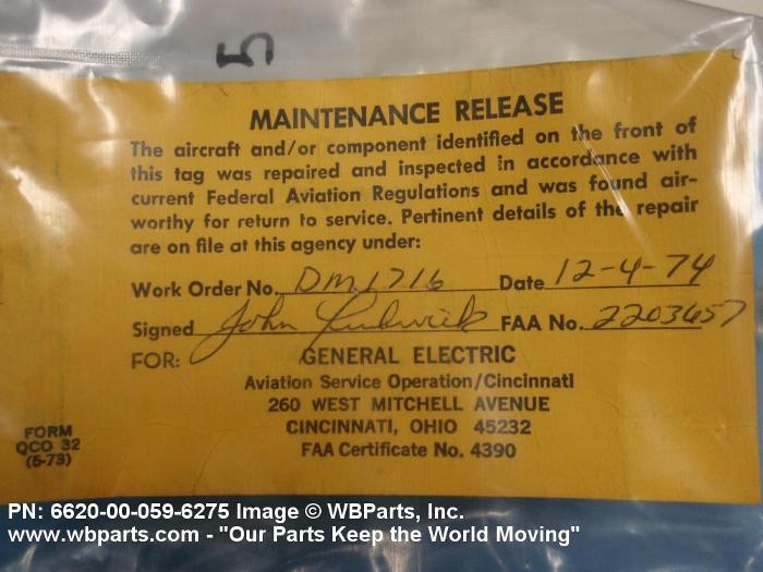 Restrictions/Controls & Freight Information | NSN 6620-00-059-6275
