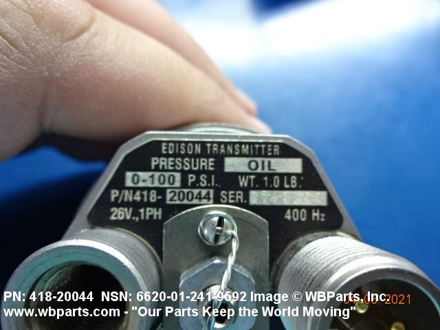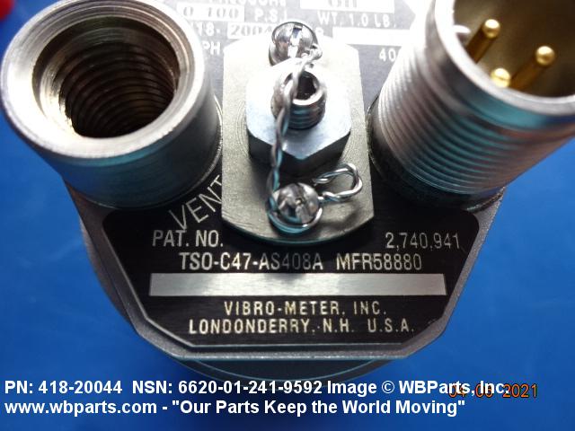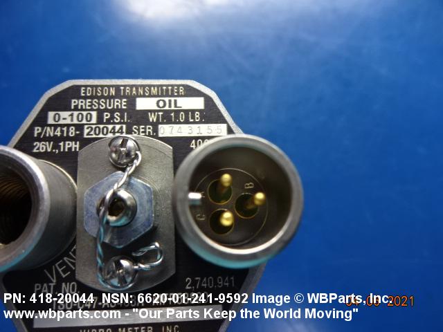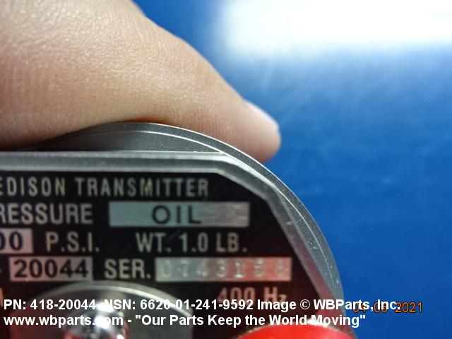 6620-01-241-9592 An instrument that senses, measures and converts pressure of a gas or fluid into electrical signals to be displayed in Pounds per Square Inch (PSI) or the equivalent. The item contains an input pressure port, electrical output connection and may include an output pressure port. See also TRANSDUCER, MOTIONAL PICKUP for items with a linear motional input and electrical output to be displayed in other than PSI or the equivalent.20266200018Engine Instruments66850073Pressure, Temperature, and Humidity Measuring and Controlling Instruments