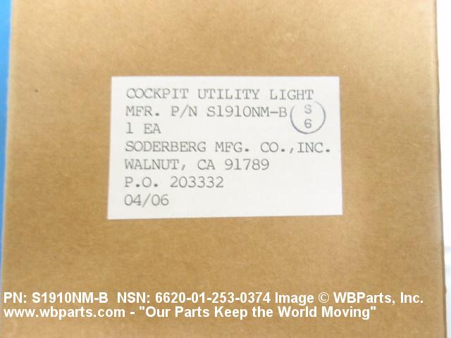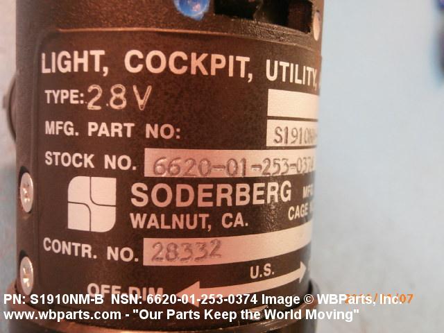 Part Alternates: S1910NMB, S1910NM-B, S1910NMB1, S1910NM-B1, S1910NWB1, S1910NW-B1, S1910WMB1, S1910WM-B1, 415321, 41532-1, 7055301108, 70553-01108, 70553-01108-101, 6620-01-253-0374, 01-253-0374, 6620012530374, 7055301108101, 012530374