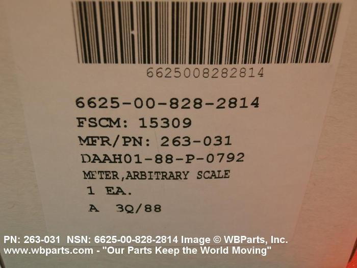 Part Alternates: 10177395, 1122908, 1122-908, 263031, 263-031, 60258, 6625-00-828-2814, 00-828-2814, 6625008282814, 008282814