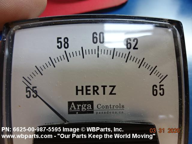 6625-00-987-5595 An instrument which measures the rate of regularly recurring variations in an electric current or voltage and is usually calibrated in Hertz (cycles per second or CPS). The value may be expressed by means of a pointer and calibrated dial vibrating reed or a digital read out display. For instruments which measure radio frequencies, see CALIBRATOR, FREQUENCY; and WAVEMENTER. Excludes: COUNTER ELECTRONIC DIGITAL.