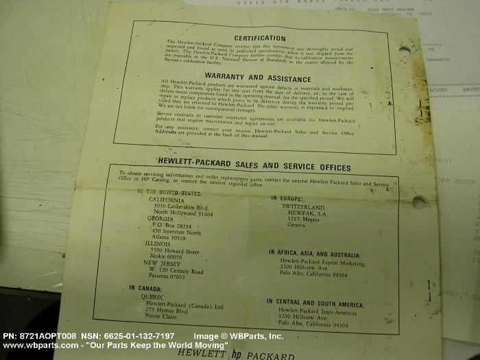 NSN 6625-01-132-7197 8721A008, 8721A-008, 8721AOPT008