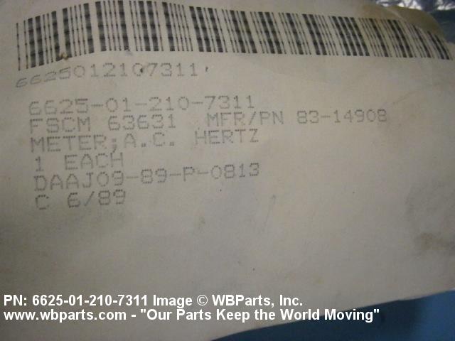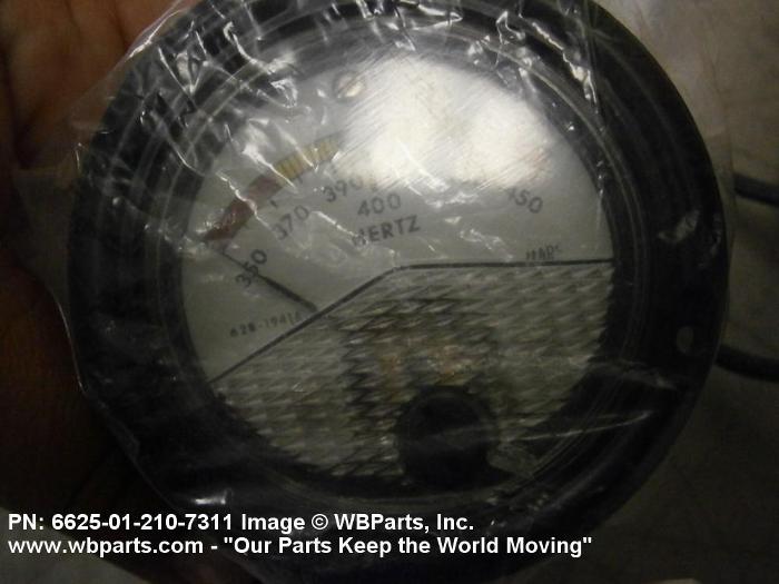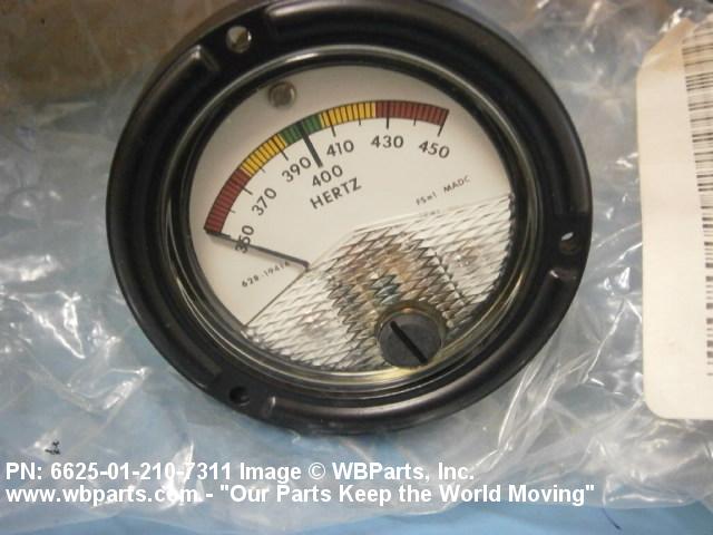 6625-01-210-7311 An instrument which measures the rate of regularly recurring variations in an electric current or voltage and is usually calibrated in Hertz (cycles per second or CPS). The value may be expressed by means of a pointer and calibrated dial vibrating reed or a digital read out display. For instruments which measure radio frequencies, see CALIBRATOR, FREQUENCY; and WAVEMENTER. Excludes: COUNTER ELECTRONIC DIGITAL.