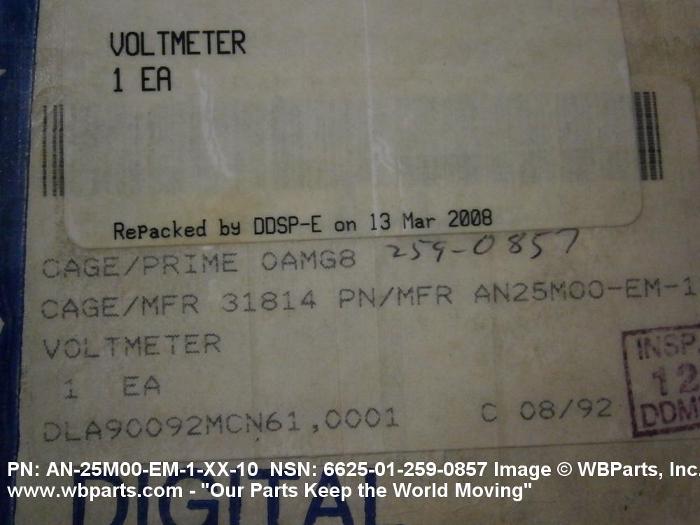 6625-01-259-0857 An instrument which measures electrical potential and is calibrated in volts or any multiple and/or submultiple thereof. The value may be expressed by means of a pointer and calibrated dial or a digital readout display.