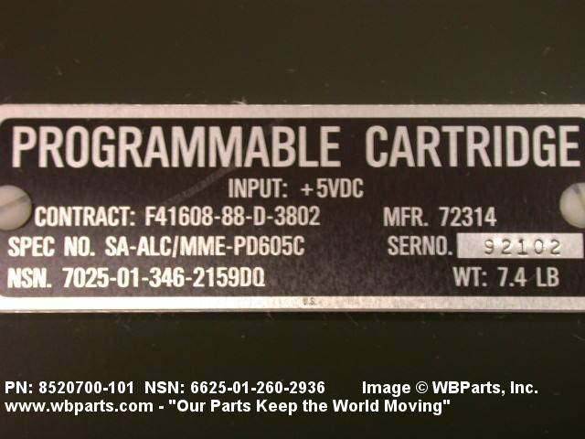 | 8520700-101 | 72314 | BAE SYSTEMS INFORMATION AND ELECTRONIC SYSTEMS INTEGRATION I |