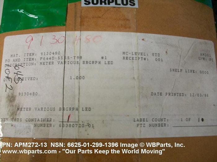 Part Alternates: APM27113, APM271-13, APM27213, APM272-13, APM272A13, APM272A-13, 4057-392 ITEM 79, 4057-392 PIECE 526, 4057392ITEM79, 4057392PIECE526, 9130424, 9206528, 6625-01-299-1396, 01-299-1396, 6625012991396, 012991396