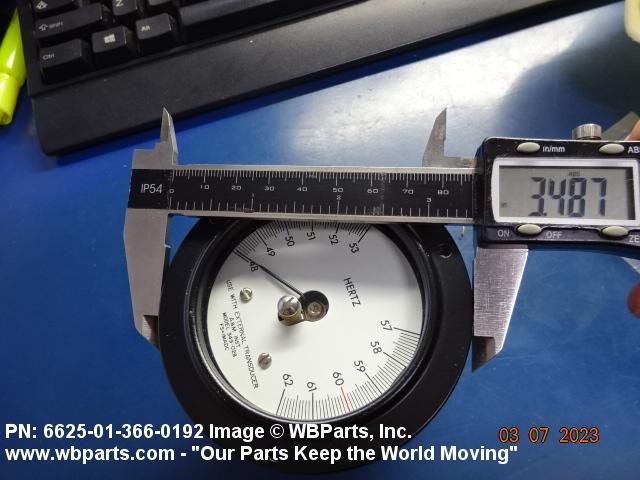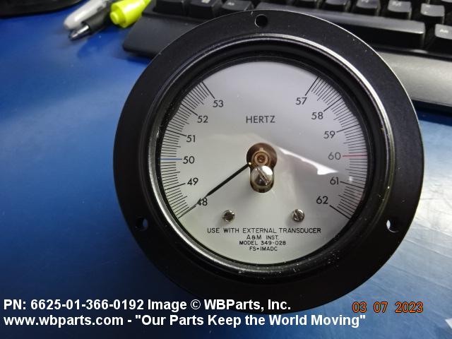 6625-01-366-0192 An instrument which measures the rate of regularly recurring variations in an electric current or voltage and is usually calibrated in Hertz (cycles per second or CPS). The value may be expressed by means of a pointer and calibrated dial vibrating reed or a digital read out display. For instruments which measure radio frequencies, see CALIBRATOR, FREQUENCY; and WAVEMENTER. Excludes: COUNTER ELECTRONIC DIGITAL.