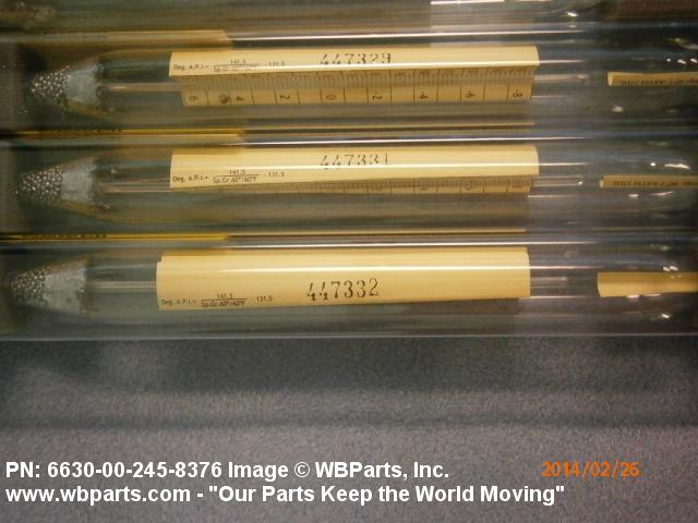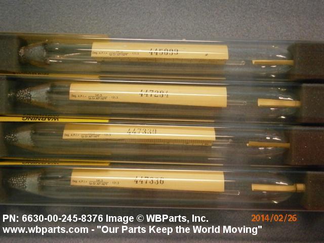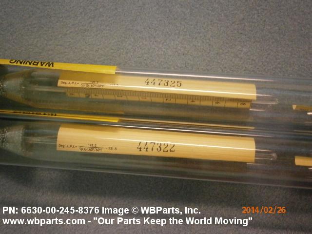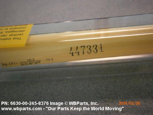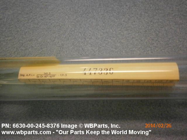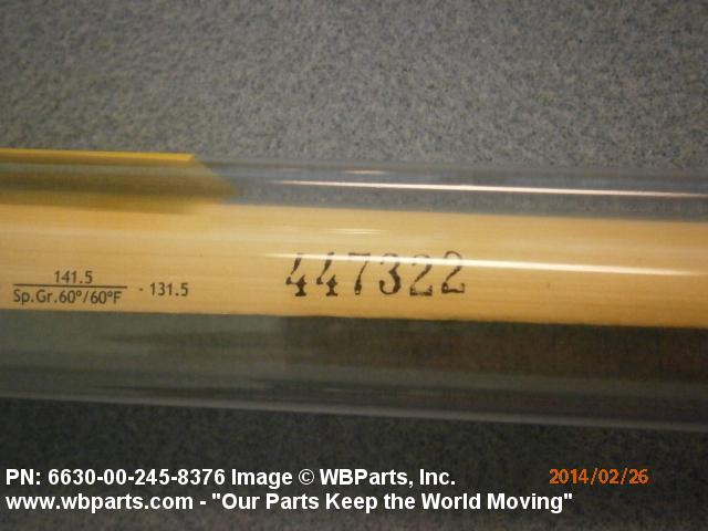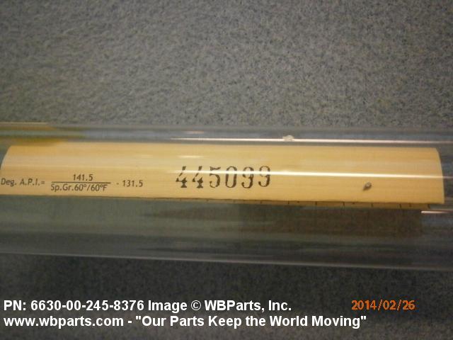 6630-00-245-8376 A hydrometer with a graduated scale on stem calibrated to read specific gravity, percentage of content(s), or the like. See also TESTER, ANTIFREEZE SOLUTIONS and TESTER, BATTERY ELECTROLYTE SOLUTION.