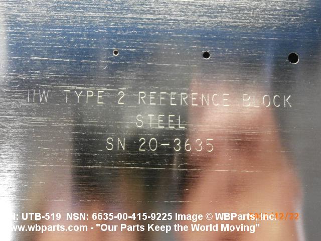| GENERAL CHARACTERISTICS ITEM DESCRIPTION | MATL: 1018 STEEL,NICKEL PLATED; CALIBRATES DISTANCE AND DETERMINES THE ANGLE OF SOUND BEAM PROPAGATION FROM SEARCH UNITS; REFERENCE HOLES ADDED TO PERMIT SENSITIVITY LEVEL SETTING |
