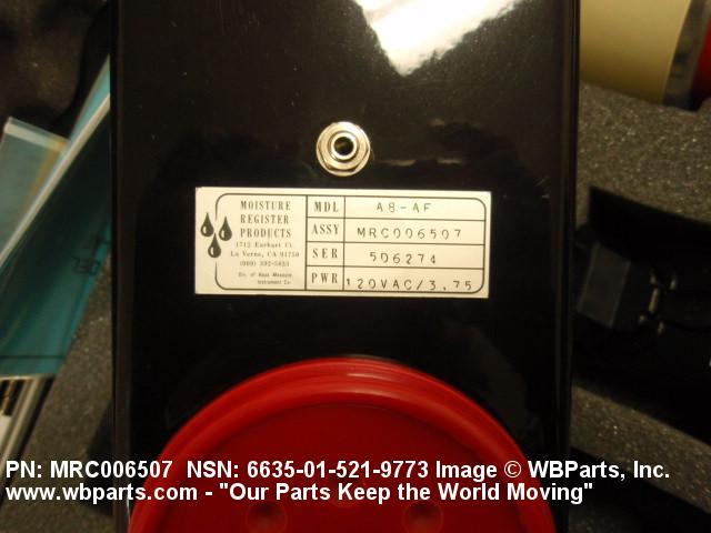 6635-00-578-5203 An electrical or battery operated device for the measurement of moisture and its percentage in wood, plaster, brick, concrete, paper, grain, and the like, without marring the sample. Item may be portable or transportable and uses various types or electrodes, or radio-active source to take readings.