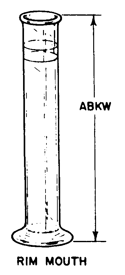 6640-00-244-4344 An ungraduated vessel with a diameter much smaller than its height. It is mounted on a flared base. If with integral thermometer or thermometer slide, see CYLINDER, HYDROMETER JAR. Excludes BEAKER, LABORATORY and JAR, CYLINDRICAL, LABORATORY.