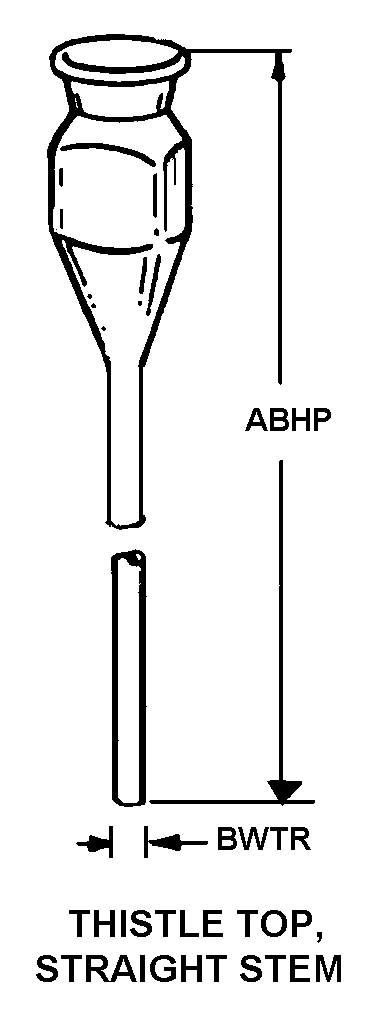 6640-00-303-7735 A funnel type reservoir with an elongated outlet stem. The stem may have bulbs and/or loops.