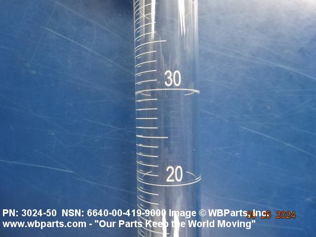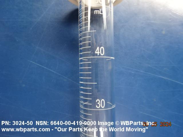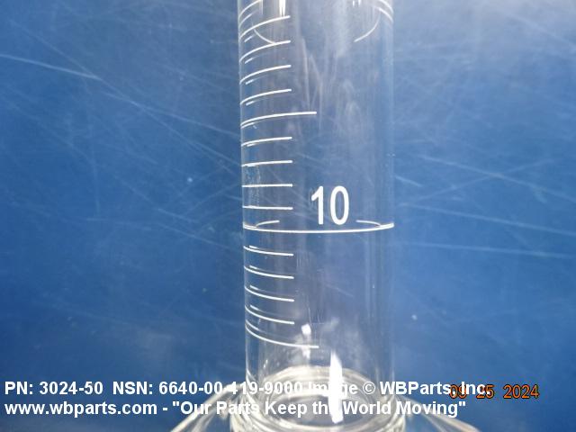 6640-00-419-9000 A cylindrical vessel with a graduated height generally five times the inside diameter. The graduations are not less than 1 mm apart. If without a base, the vessel may be supplied with a holder which incorporates a base. Excludes GRADUATE, LIQUID, LABORATORY.