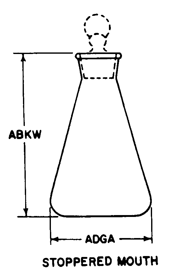 6640-00-424-4000 A conical-shaped vessel with a flat bottom and a short neck. It may be graduated and have a mouth which will accommodate a stopper or screw cap.