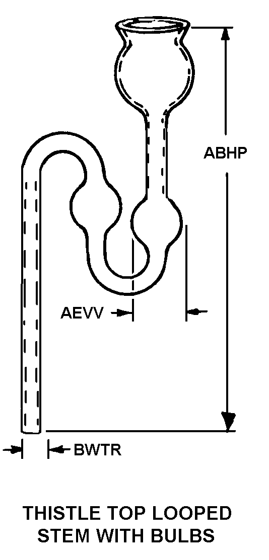 6640-00-427-4010 A funnel type reservoir with an elongated outlet stem. The stem may have bulbs and/or loops.